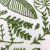 The design is printed onto white medium weight (150gsm) cotton in white, clear enough for you to see the lines but also fine enough to be covered by your stitches. At this stage the dark green is not available on printed fabric, just a kit using a stick and stitch patch.