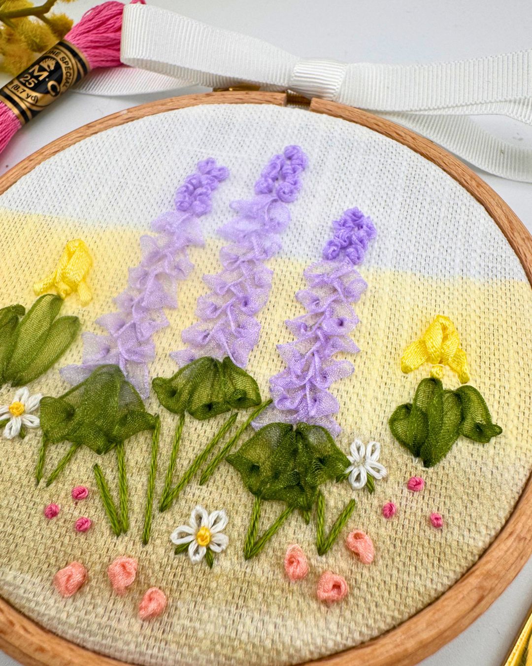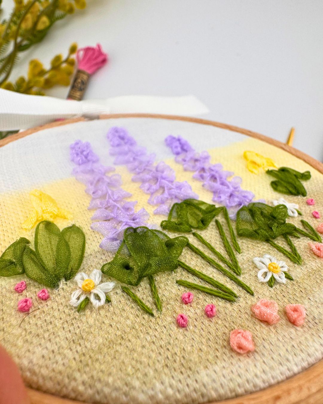 If you’ve always been curious about Ribbon work embroidery but not sure where to start, this is for for you. Unleash your creativity with my ‘Let’s try Ribbon work Embroidery Kit’, an ideal choice for beginners and seasoned stitchers alike. Whether you’re looking for a relaxing project to curl up on the sofa with or learn ribbon work embroidery techniques, this modern embroidery kit is designed to deliver a fun, satisfying experience—and a stunning piece of wall art to treasure.