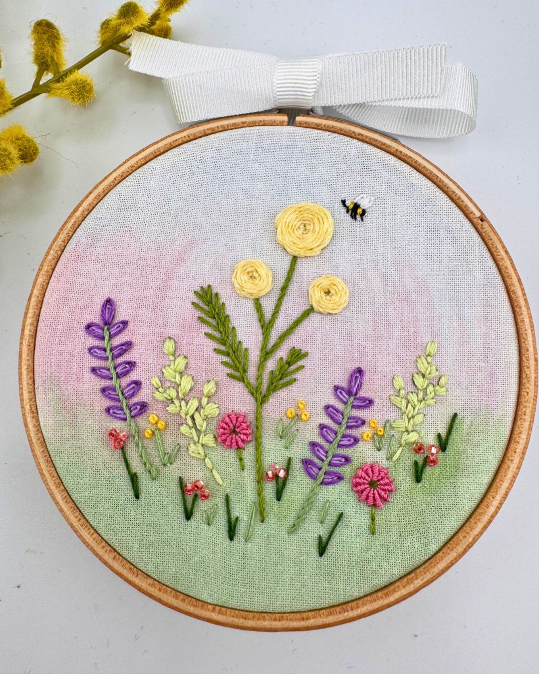 This listing is for a printed fabric PANEL for stitching my ‘Mini Spring Flower garden’ embroidery design. This is a great option if you are not so keen on transferring the pattern to fabric and you have lots of your own embroidery hoop and threads.