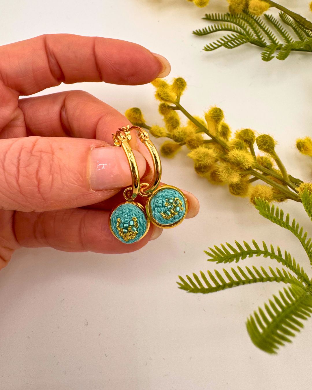 These hand embroidered hoop earrings are perfect to add a little wow to your outfit this winter✨